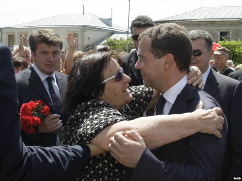 Жители Цхинвали приветствуют Дмитрия Медведева