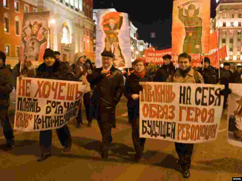 Очередную годовщину Октябрьской революции коммунисты отметили массовым шествием в центре Москвы. По завершении сбора на Пушкинской площади участники акции двинулись по Тверской, на Театральной площади состоялся митинг и концерт.