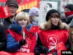 На демонстрации в честь 92-й годовщины Октябрьской революции в Москве