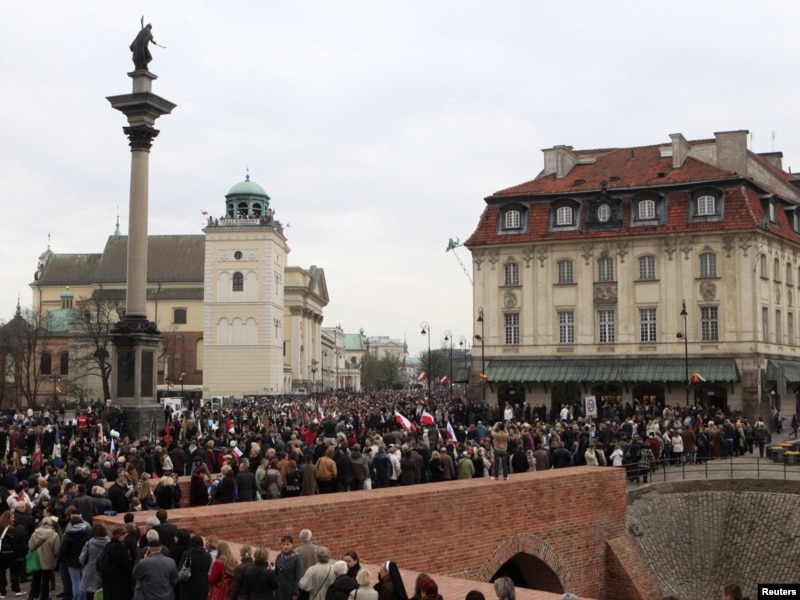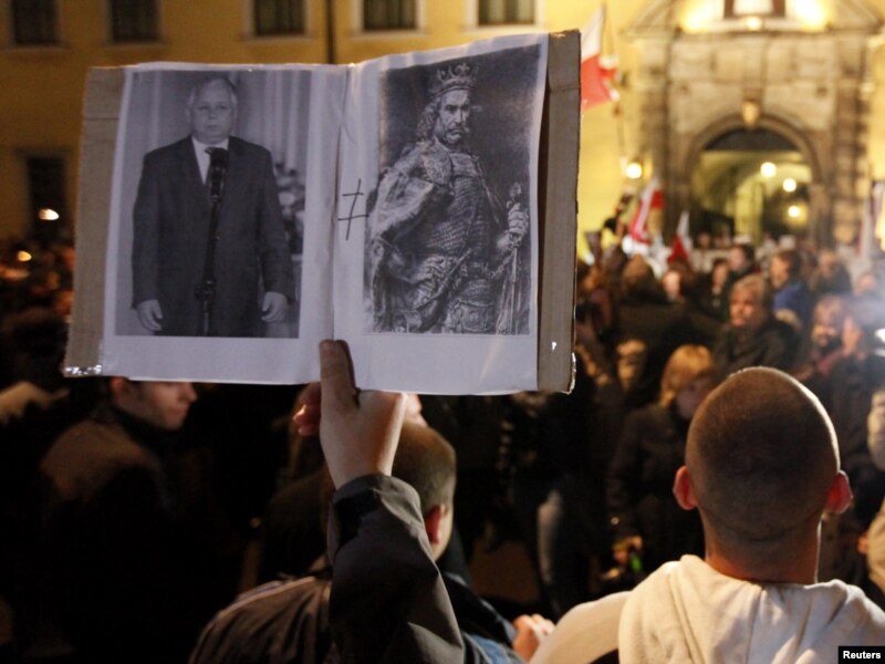 Митинг против захоронения президента Леха Качиньского с супругой в замке Вавель
