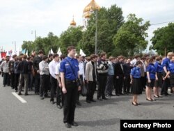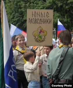 Наверное, если собрать все воображение, все-таки можно как-то объяснить, какое отношение вся эта общественность имеет к Святым. Но вот хватит ли фантазии объяснить участие в крестном ходе представителей "Юных разведчиков"? Не уверен!