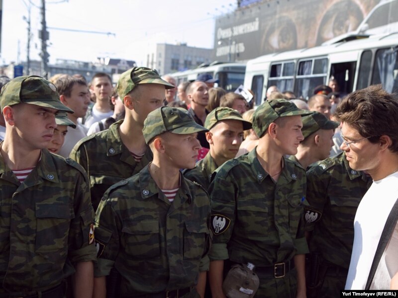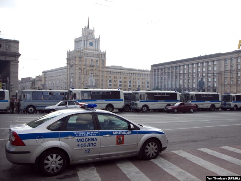 Милицейский резерв. По сложившейся традиции количество сотрудников милиции и солдат внутренних войск на площади и на подступах к ней превышало количество собравшихся примерно в 20 раз