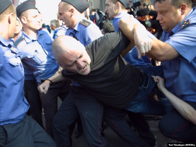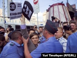 В Москве милиция пресекла мирную акцию "Стратегии-31" в защиту 31-й статьи Конституции РФ, гарантирующей свободу собраний.