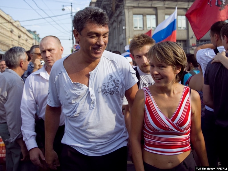 Борис Немцов никаких листков не поднимал - на площадь он пришел с лидером движения в защиту Химкинского леса Евгенией Чириковой и подписывал свой доклад "Путин. Итоги"