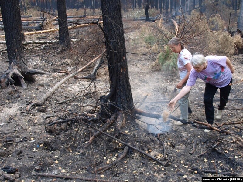 – Перерывы будут, конечно. Ночью очень опасно работать, потому что падают деревья, тлевшие в торфе. Ночью стараемся не работать. Сил достаточно, многие оказывают помощь и поддержку, и шланги привозят, и помогают, кто чем может. Я просто тушу пожар в эту самую минуту, и мне совсем некогда разговаривать.