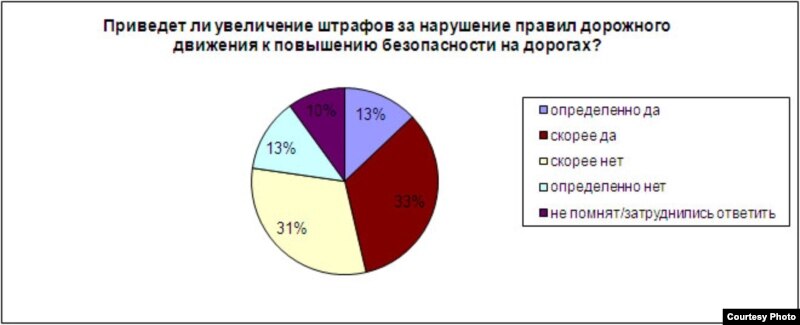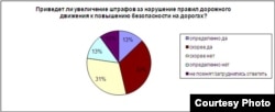 По поводу увеличения штрафов за нарушение дорожных правил в российском обществе нет единого мнения. Эту меру признают эффективной сорок шесть процентов россиян, и чуть меньше, сорок четыре процента, считают ее неэффективной или бесполезной.