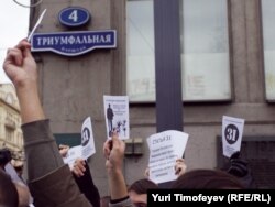 Участница акции "Стратегии-31" на Триумфальной площади в Москве
