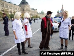 Активисты из движения людей, живущих с ВИЧ, провели на Красной площади несанкционированную акцию, чтобы привлечь внимание общественности к проблемам ВИЧ-инфицированных.