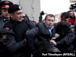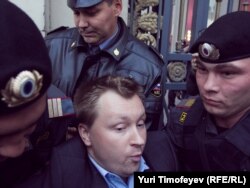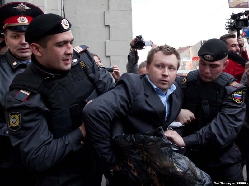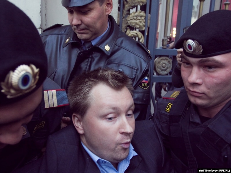 Николая Алексеева оттаскивают от ворот мэрии Москвы