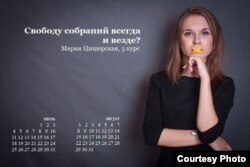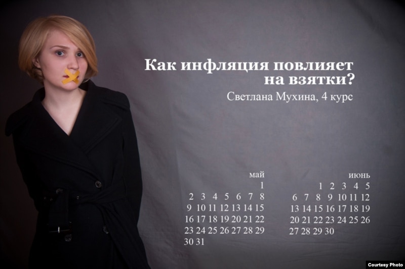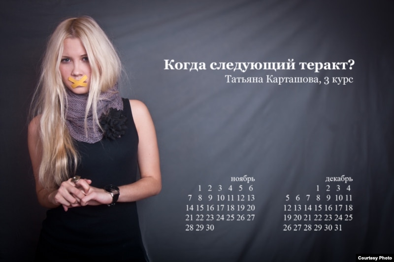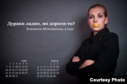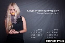 В ЖЖ опубликован новый настенный календарь с фотографиями студенток журфака МГУ. На этот раз модели вполне одеты, у них заклеены рты, а вместо подписей к фотографиям - неприятные вопросы Владимиру Путину. Календарь стал ответом на эротическое поздравление премьер-министру от студенток и выпускниц журфака.