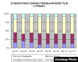 – Отношение к тандему, к первым лицам, сохраняется вполне положительное. При этом все-таки большинство считает, что Медведев играет вторую роль и продолжает политику, намеченную Путиным, который задает основной тон.
