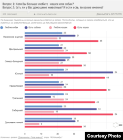 Фонд "Общественное мнение» по заказу компании «ФОМ-MEDIA" провел ряд опросов, посвященных домашним животным. "Собаки проигрывают кошкам в борьбе за дома россиян. И это убедительное поражение. Мало того, что кошек в России заводят чаще - лучшего друга человека бьют на собственной территории. Выбор в пользу кошки нередко делают даже убежденные собачники", - такой комментарий висит на сайте компании. 31% опрошенных сообщили о том, что у них есть собака. О наличии в доме кошки говорят 45 % россиян. О результатах исследования рассказал РС Антон Степнов, редактор "ФОМ-MEDIA".