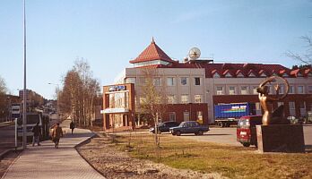 В Ханты-Мансийске заработки чуть не самые высокие в стране, но за покупками и развлечениями едут в признанные центры - Сургут, Тюмень, Нефтеюганск. Вдоль идущей от телеграфа к речному порту главной улицы Гагарина - по-московски роскошные здания нефтяных и газовых фирм, Центра для одаренных детей Севера с галереями, мастерскими и зимним садом, телекомпании "Югра", направо по Спортивной - биатлонный центр международного класса. Все - вперемешку с избами и бараками. Первосортные дороги приподняты при переделке, так что окрестные дома в паводок заливает не по колено, как раньше, а по уши. Парк Победы изысканной монохромной живописи - сплошь березы. Рядом здание окружкома с розовым фасадом, перед ним - монументальный мраморный фонтан с глобусом. Удручающие деревенские развалюхи у речного порта в Самарове, откуда начинался город.