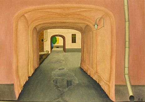 Но Саша еще и замечательный, на мой взгляд, художник. Были у него и персональные выставки в Доме ученых, и даже вот перед самым отъездом была у него такая маленькая экспозиция. По-моему, четыре картины было там или даже больше.