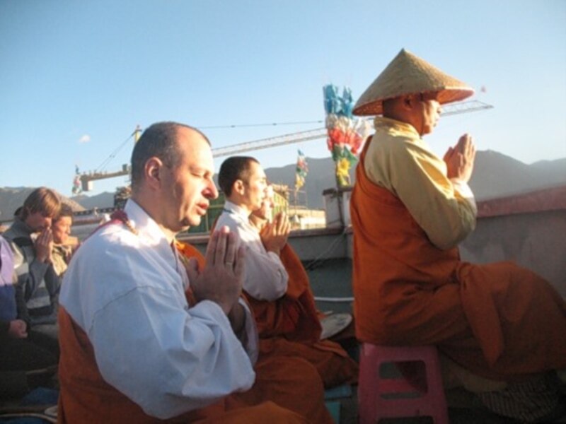 Приуныв, мы сгрудились в номере учителя, прикрывая собой наших китайских братьев, которых в любую минуту могли задержать, как только они окажутся одни. Несколько часов длилось томительное ожидание. Переодевшись в обычную одежду, мы с Тэрасавой-сэнсэем вдвоем проделали партизанскую вылазку в ближайшее интернет-кафе и выложили в социальной сети Google – Orkut фотографии нашей публичной молитвы. Зайти на Facebook не получилось – в Китае к нему закрыт доступ. Когда Тэрасава-сэнсэй стал общаться в чате со своими друзьями, при частом упоминании слова Тибет интернет-браузер автоматически закрывался.