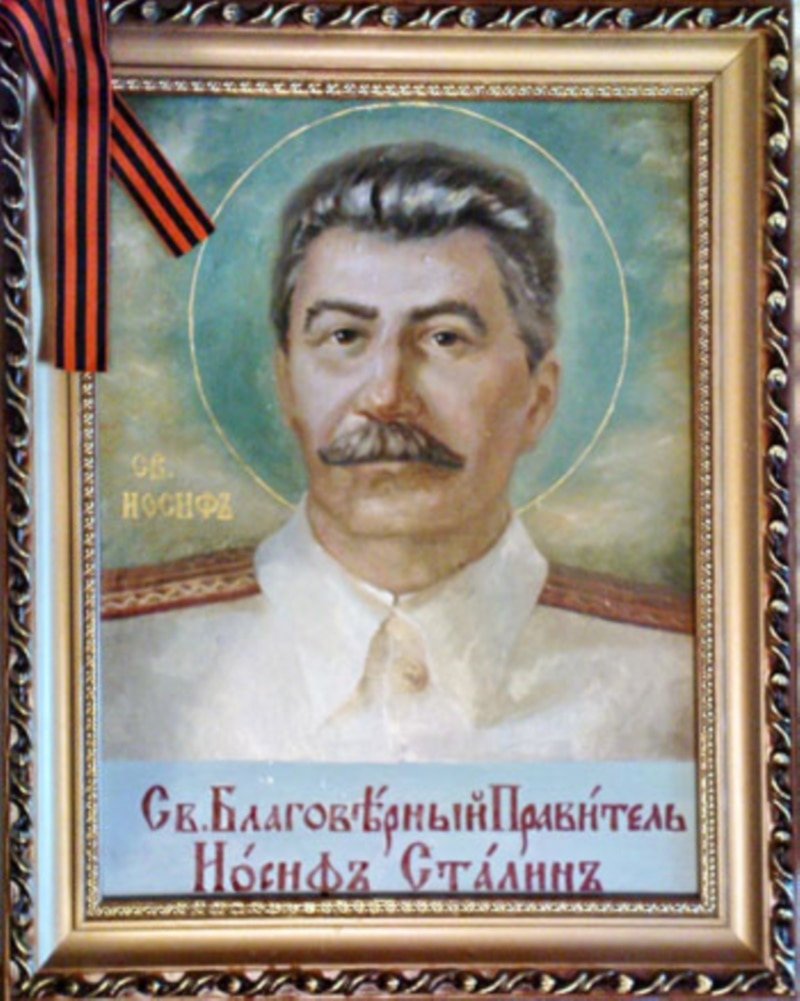 почитали Иосифа Виссарионовича Сталина (не все, но некоторые) считают, что и Сталин пострадал от злокозненных евреев, был ими убит. У меня даже помещена икона Иосифа Виссарионовича Сталина, на которой есть два забавных клейма. На одном – Святой Иосиф у Блаженной Матроны московской спрашивает совета, а на другой – ''мученическая кончина Святого Иосифа''. На ней изображен Лазарь Моисеевич Каганович в спецодежде, который держит ноги великого вождя, прикрытого чем-то, напоминающим красное знамя, а его сестра душит подушкой Иосифа Виссарионовича Сталина. Вот вам и мученик. Комментировать здесь нечего, учитывая, что родной сестры у товарища Кагановича не было, но это к делу не относится.