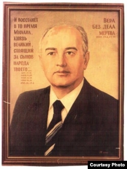 Сергей Фирсов: Это парадокс. Так получилось, что мои коллеги нашли такую странную икону, объяснение которой давать сейчас сложно, но я посчитал важным и интересным поместить ее. Михаил Сергеевич Горбачев в данном случае рассматривается как жертва, последний герой. На этой иконе слова: ''И восстанет в то время Михаил, князь великий, стоящий за сынов народа своего. Вера без дела — мертва''. Я ничего не понимаю.