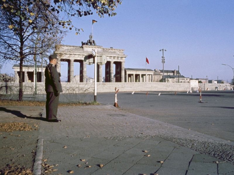 Диктор: ''Советское руководство могло создать в своей зоне Германии только советский тип жизни, поэтому до возведения Стены жители Восточного сектора Берлина тысячами бежали в Западный, грозя совершенно обезлюдить Восточную Германию. После возведения стены жизнь в Восточном Берлине затихла, и только один род деятельности по-настоящему процветал – обеспечение неприступности Стены для собственных граждан. Даже площадь Potsdamer Platz – некогда оживленный и суматошный эпицентр Веймарской республики – была превращена в минное поле. Пройдет почти 30 лет до того момента в ноябре 1989 года, когда зловещее сооружение рухнет и Берлин снова станет единым городом''.