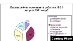 К 20-летию победы над путчем ГКЧП Аналитический центра Юрия Левады провел ряд опросов. Как выяснилось, только 10% россиян считают те события победой демократической революции, покончившей с властью КПСС. 39% граждан уверены, что это трагическое событие, имевшее гибельные последствия для страны и народа, а еще 35% - что это просто эпизод борьбы за власть в высшем руководстве страны. На вопрос: «Что главным образом помешало успеху ГКЧП в августе 1991 года?» 28 процентов опрошенных отвечают: «плохая организация переворота», 19% говорят: «раскол армии, МВД и КГБ», и лишь 15 % респондентов утверждают, что решающую роль тут сыграло сопротивление народа. Социологи отмечают, что с годами эти события все больше вытесняются из общественной памяти, и россияне в массе своей не склонны придавать им большого значения.
