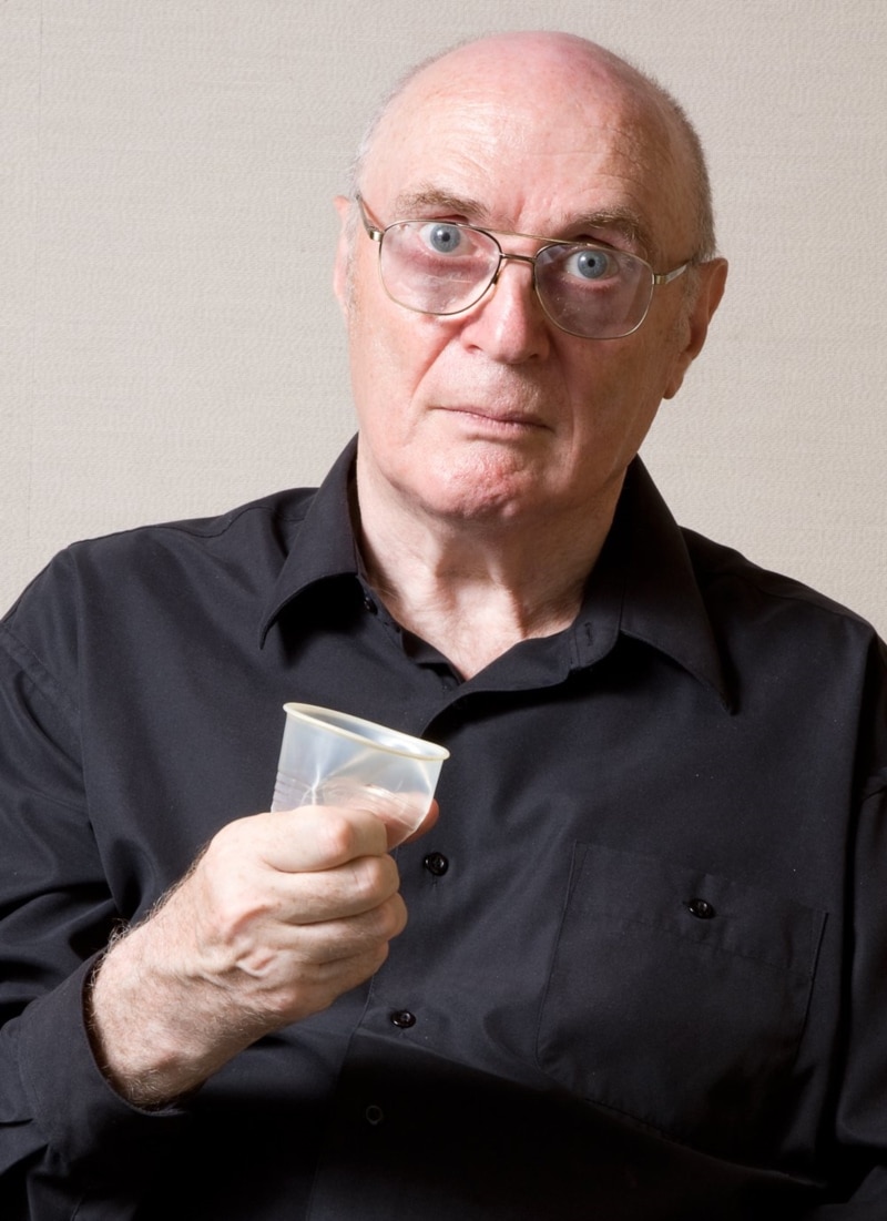 Ирина Цезарь: Это другой пример того, как я использую метафорический или символический объект. Я создаю определенные концептуальные, смысловые ситуации, прошу героев воплотить какую-то идею, и эта идея воплощена метафорически, афористично, за счет манипуляций или концептуального действия с каким-то символическим предметом. В этом портрете основная идея была как раз выразить неконформность и конфронтацию. Ситуация, когда известный диссидент Павел Литвинов мнет пластиковый стакан, выражает его жизнь — то, как он ломает советскую рутину, социальную машину, которая превращает людей в функционирующие гайки. И этот жест спровоцировал его на осознание своей жизни, которая была поломана страшной тоталитарной машиной, и этот жест спровоцировал его просто отпустить ужас, поэтому ужас и выразился у него в глазах.