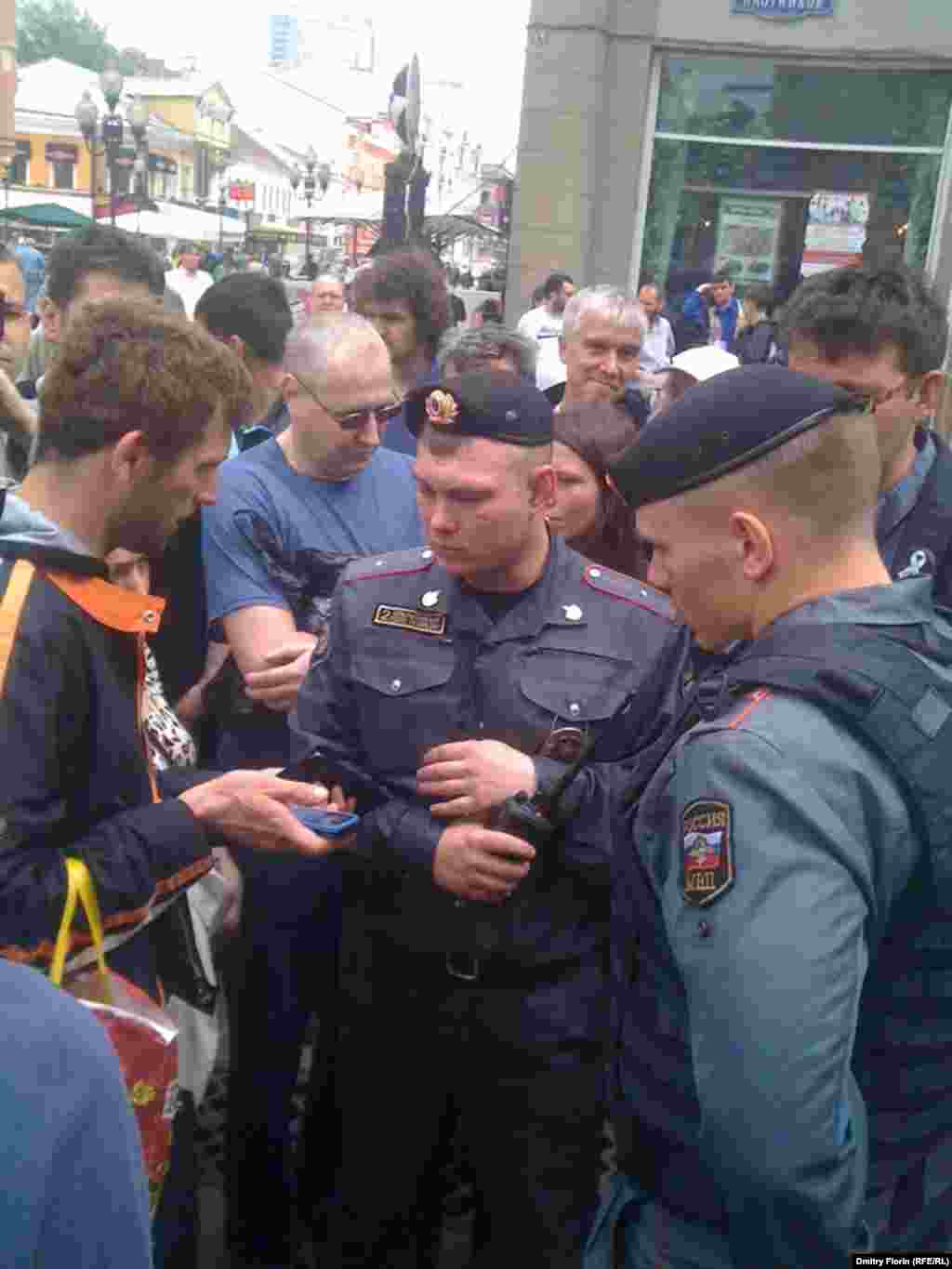 На Старом Арбате полиция забрала около 10 человек и увезла, остальных проверяют