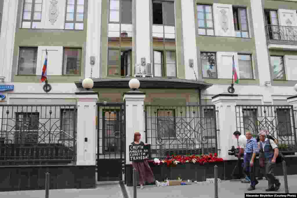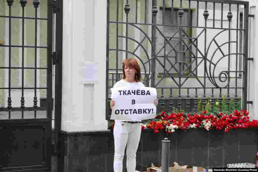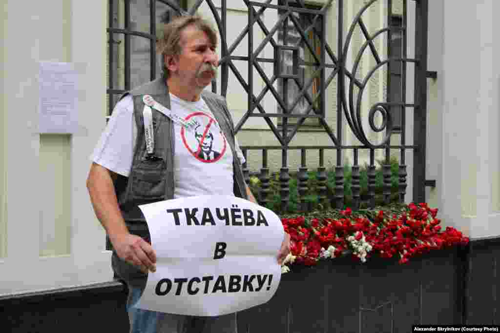 9 июля - день траура у Представительства Краснодарского края в Москве. Люди несут цветы и свечи. Некоторые встали в одиночных пикетах с плакатами "Ткачёва в отставку" и "Смерти людей на совести Ткачева".
