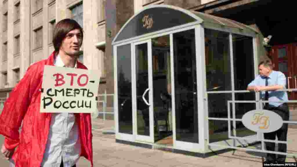 10 июля Госдума России рассматривает вопрос о ратификации протокола о присоединении России к Всемирной торговой организации (ВТО). Перед началом заседания коммунисты провели у Госдумы акцию протеста.