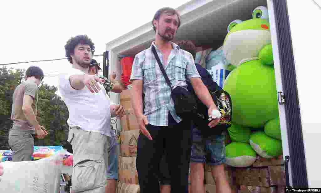На Воробьевых горах в Москве продолжается сбор помощи пострадавшим от наводнения на Кубани.