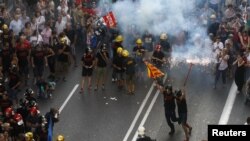 Ирина Лагунина: В Испании, переживающей глубокий экономический кризис, усилились разного рода протестные движения, отрицающие существующую в стране и на Западе в целом общественно-политическую систему. Некоторые из них предпочитают выражать свой протест мирным путем, другие прибегают к насилию. Одни называют себя коммунистами или анархистами, другие – личностями, свободными от какой-либо идеологии. Политологи называют подобные движения «антисистемой». Из Мадрида – Виктор Черецкий.