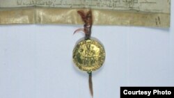 Сейчас Золотая булла хранится в одном из подразделений Национального архива Чехии, в Архиве чешской короны. По случаю юбилея древний пергамент на три дня станет доступен общественности. Говорит сотрудница Архива чешской короны Ленка Матушикова.
