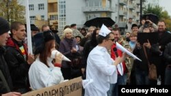 Можно сказать, что на митинге в рамках "Марша Миллионов" фактически началась новая предвыборная кампания в Екатеринбурге. Пока ораторы выступали с импровизированной сцены, среди слушателей появились провокаторы. Неизвестные привели на площадь Труда нескольких бродяг, явно нетрезвых - они неуверенно держали в руках картонные плакаты с надписью "Не забудем, не простим". Полицейские вывели эту группу за пределы митинга, под призывы протестующих – выяснить, кто заплатил этим людям. И в то же самое время с другой стороны появился человек, наряженный в фашистскую форму. Он держал плакат, на котором было написано, что белые ленты носили фашистские полицейские. Людей, собравших на митинг, это оскорбило: