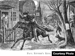 Однако гонец Поль Ревир прискакал в Лексингтон, расположенный в пяти милях от Конкорда, и поднял тревогу. Ревира на обратном пути схватили англичане, но завладеть боеприпасами им не удалось; завязался бой, с которого и началась Война за независимость. Милиция штатов составила костяк Континентальной армии. Генри Лонгфелло воспел подвиг «курьера революции» в балладе «Скачка Поля Ревира», которую знает каждый американский ребенок: