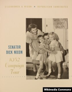 На волне популярности Никсон был избран в Сенат. Уже в 1952 году стал кандидатом в вице-президенты, напарником Дуайта Эйзенхауэра. Его кандидатура оказалась под угрозой, когда оппоненты обвинили его в нецелевом расходовании средств избирательного фонда. Никсон агрессивно оправдывался. В специальном телеобращении к нации он заявил, что с детских лет был тружеником, вел скромный образ жизни, что у его жены Пэт нет даже норковой шубы, а только «приличное республиканское пальто», и единственным подарком, который он получил как политик, был щенок: