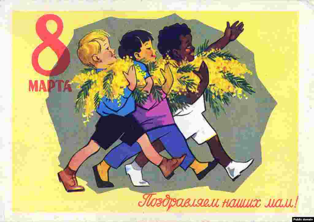 В Советском Союзе международный женский день, учрежденный в рамках женского рабочего движения в 1910 году, постепенно приобрел совершенно иной смысл. Восьмое марта воспринималось не как день борьбы за равноправие женщин, а как повод оказать им внимание – словами, цветами и подарками. Тематика советских плакатов и открыток к 8 марта была чрезвычайно разнообразной: прославлялись достижения женщин, весна, материнство, дружба между народами.