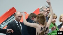 В Германии полиция изучает обстоятельства инцидента на открытии международной промышленной выставки в Ганновере, где в присутствии президента России Владимира Путина и канцлера ФРГ Ангелы Меркель провели акцию протеста активистки движения FEMEN. Пятеро девушек, раздевшись до пояса, призвали Путина уйти в отставку; того же содержания лозунги с нецензурными фразами на русском и английском языках были написаны на груди и спине одной из активисток.