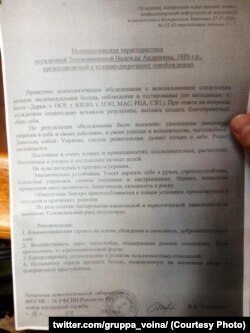 Петр Верзилов сфотографировал и выложил ту самую характеристику.