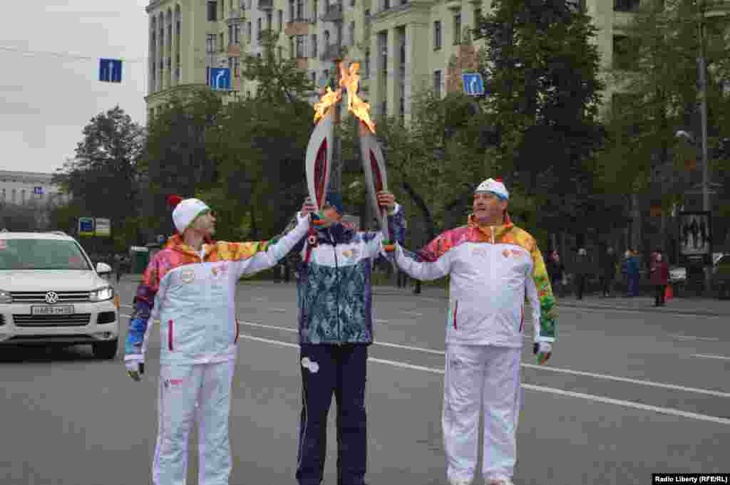 В понедельник в Москве продолжилась эстафета олимпийского огня, старт которой дал накануне в Кремле президент Владимир Путин