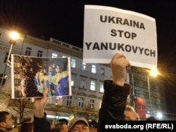 Несколько тысяч человек вышли на Вацлавскую площадь столицы Чехии, чтобы выразить солидарность с украинским Майданом и почтить память погибших.