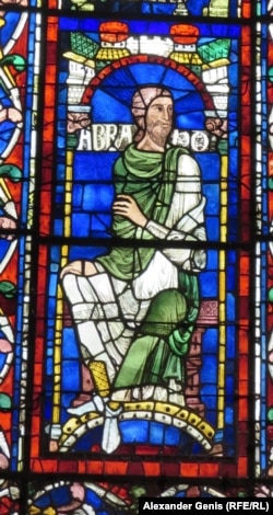 Заново очищенные от многовековой пыли (обычная практика всех выставок в США – бесплатная реставрация экспонатов), они представляют библейских царей, патриархов, героев. Огромные портреты, обрамленные сложным орнаментом и флоральными узорами, выступают из почти кромешной тьмы. Главное в них – игра света с сюжетом. По возможности избегая подсказок живописца, старинные витражи рассказывали свои истории светом, цветом и жестом. Не лица, а позы, вместе с богатой цветовой символикой и запутанным аллегорическим антуражем, объясняют роль и смысл изображения. Так, Авраам в изящной зеленой хламиде, напоминающей об античном мастерстве в изображении складок, показан тревожно прислушивающимся к голосу только что открытого им нового бога.
