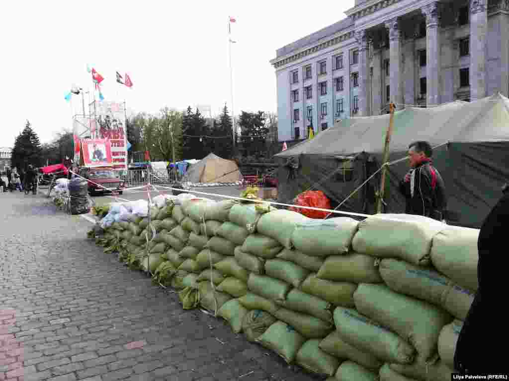 На Приморском бульваре, у памятника Дюку Ришелье - место встречи и митингов сторонников евроинтеграции Украины. Пророссийски настроенные граждане разбили палаточный лагерь на площади Куликово поле у здания областной администрации