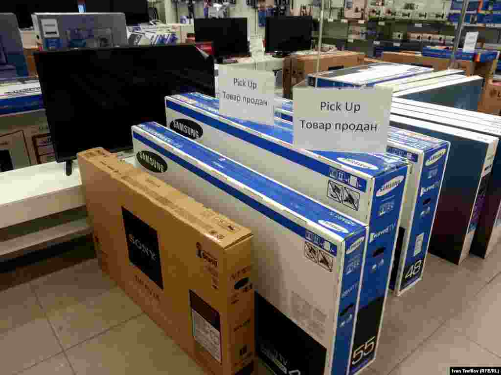 В России наблюдается ажиотажный спрос на отдельные виды товаров, в первую очередь, на бытовую технику и электронику. Отчасти такие рекордные продажи связаны с наступающим праздником, но основная причина – в желании людей вложить свои обесценивающиеся рубли перед неминуемым повышением цен. В результате этой массовой скупки товаров в некоторых магазинах Москвы, например, уже заметно их полное или частичное отсутствие. Фотографии сделаны смартфоном