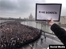 Корреспондент Радио Свобода Светлана Павлова, одна из ведущих нашу прямую трансляцию, говорит, что шествие обходится без агрессии, толпа скандирует "Россия без Путина".