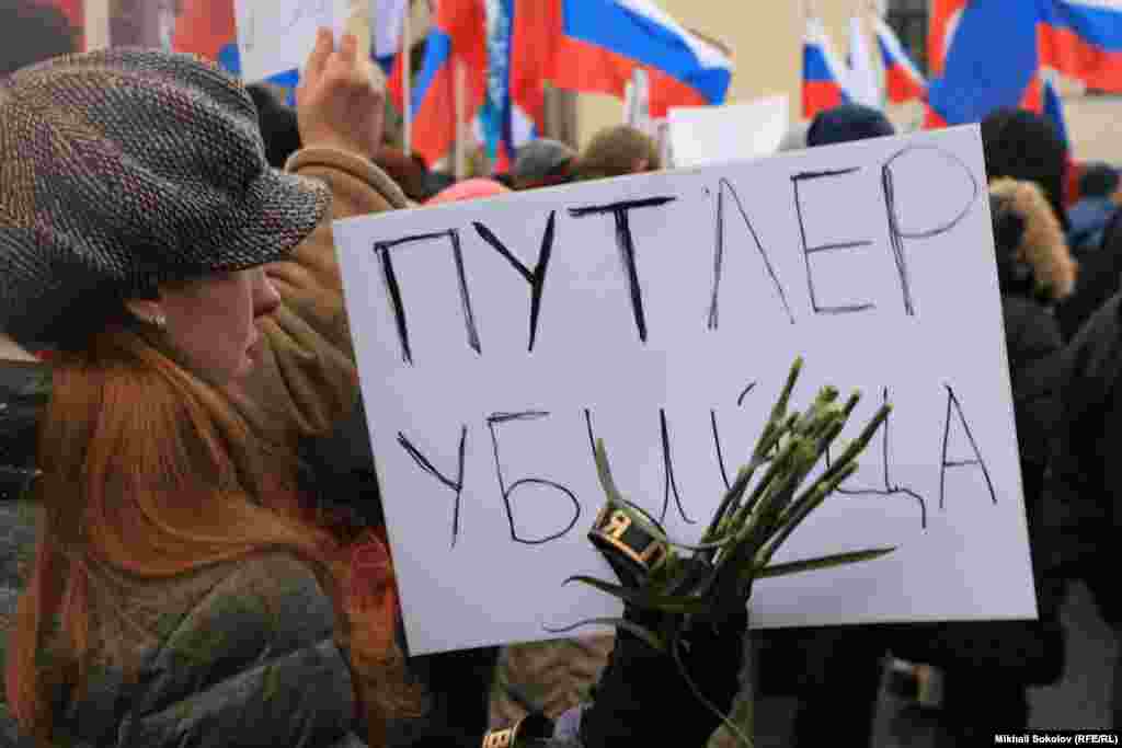 В Москве прошел многотысячный марш памяти убитого лидера демократической оппозиции Бориса Немцова. Участники шествия несли плакаты с его изображением. Немцов был застрелен в ночь на субботу в центре Москвы.