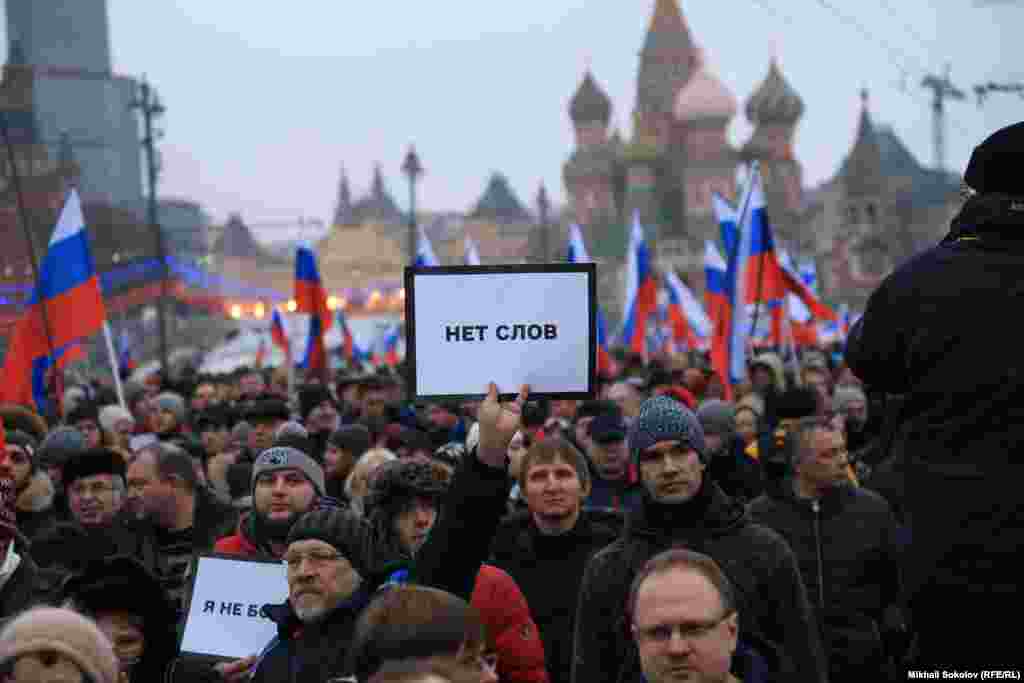 В Москве прошел многотысячный марш памяти убитого лидера демократической оппозиции Бориса Немцова. Участники шествия несли плакаты с его изображением. Немцов был застрелен в ночь на субботу в центре Москвы.