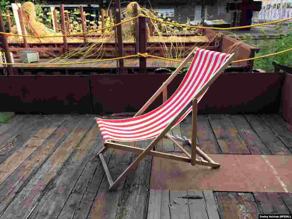 Зрители сидят в шезлонгах на перроне и смотрят фильмы из коллекции пражской синематеки