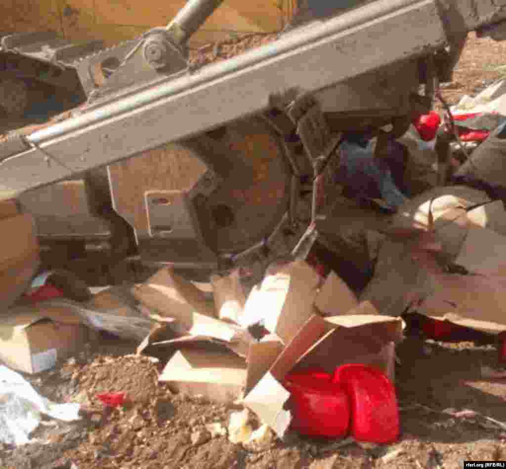 За один день 6-го августа, когда вступил в силу указ Владимира Путина об уничтожении продуктов, ввезенных в обход эмбарго, в России было уничтожено 319 тонн продовольствия — фруктов, овощей, сыров, мяса. Как сообщает Россельхознадзор, уничтожение продолжится в пятницу. Из этих 319 тонн еды 20 тонн было уничтожено под Оренбургом. Пресс-секретарь "Россельхознадзора" Юлия Мелано рассказала журналистам, что речь идет о сыре марки "Российский" производства Латвии. Груз якобы прибыл из Казахстана на машине с казахстанскими номерами. Его "привели в негодность" и "уничтожили механическим способом". За тем, как это происходило, наблюдал корреспондент Радио Свобода.