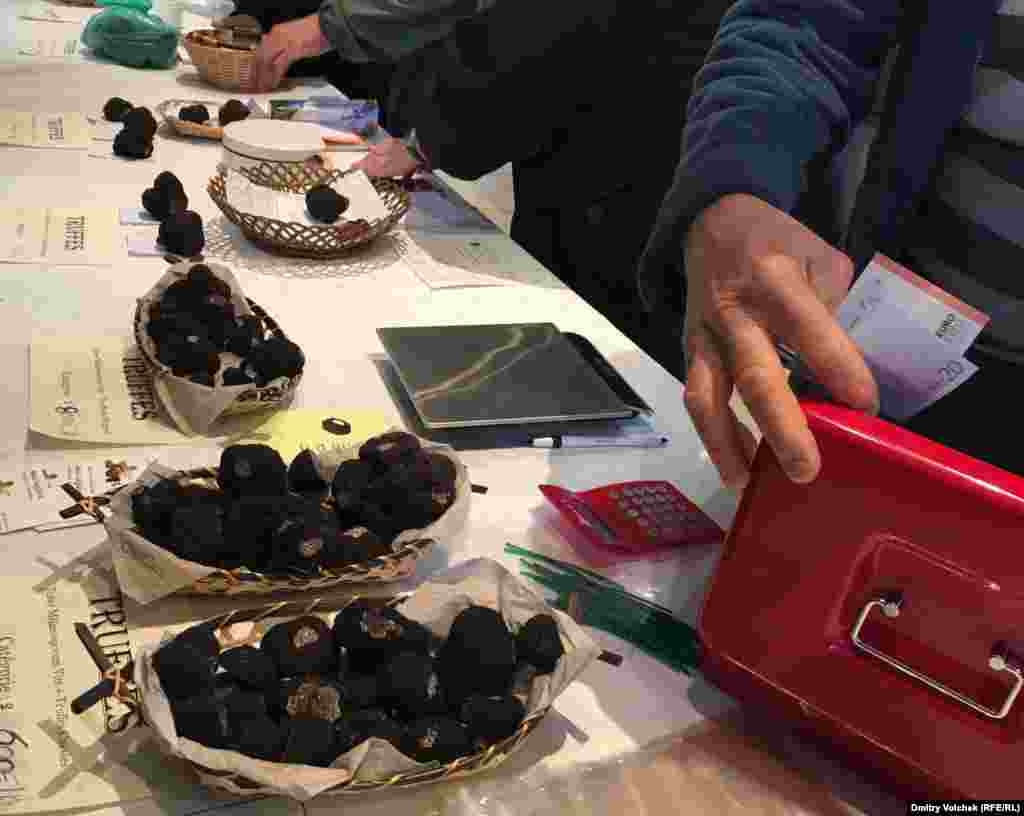 В декабре начинается сезон трюфелей. Трюфельные рынки во французском департаменте Дордонь открываются 3 декабря и работают до февраля. Каждый день ассоциация трюфелеводов района Перигор проводит торги в новой деревне. Эти фотографии сделаны в деревне Сент-Альвер, где проходят самые крупные торги по вторникам. Главная площадь деревни так и называется – площадь Трюфельного Рынка. Найти трюфели непросто, их вынюхивают специально обученные собаки, поэтому и цены кусаются: килограмм самых лучших трюфелей здесь предлагают за 900 евро.