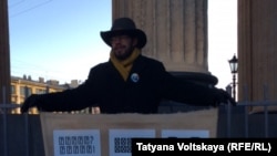 В акции приняли участие около 20 человек. В числе организаторов акции – петербургская творческая группа "Родина". Художник Максим Евстропов создал свои работы на основе советских плакатов.