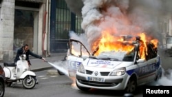 В Париже разъяренная толпа подожгла полицейский автомобиль