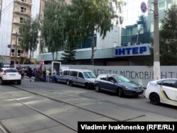 "Мы требуем, чтобы на "Интере" прекратили транслировать российскую телепродукцию. Мы требуем, что они изменили информационную политику, отказались от российской пропаганды, чтобы они не рекламировали московский патриархат и, вообще, чтобы эта координация из Кремля была прекращена", – заявил координатор акции Алексей Середюк.